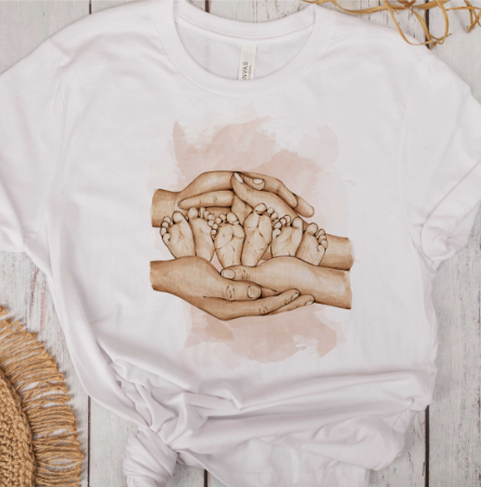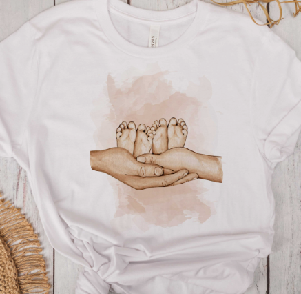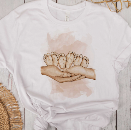 Qué trae esta cajita? Un regalo para Mamá !! Sorprenderla con esta hermosa idea, una remera con la estampa dedicada a ella. Podes colocar la cantidad de piecitos según la cantidad de hijos y llenarla de amor con esta idea hermosa para la remera de su vida!
