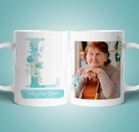 Taza de cerámica, con diseño recto con capacidad 350 cc. Estampado temática MAMÁ, acompañada de su foto y la dedicatoria que muestran las fotos a elección, según catálogo.