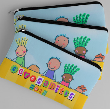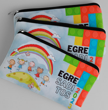 Cartuchera escolar simil neoprene. El material es ideal para uso diario ya que es lavable, suave y de secado rápido. con un diseño simple y funcional permite guardar todo lo necesario para el COLE!. Se convierte en un regalo inolvidable con temática estampada Egresaditos, acompañada por la dedicatoria a elección, según catálogo.